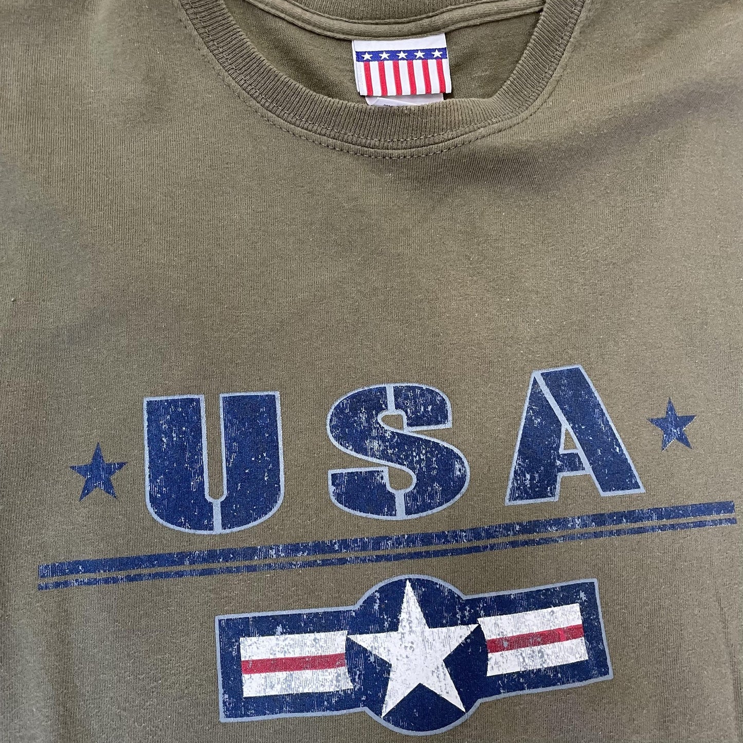 USA Shirt Mens Medium Olive Green Military Sleeveless Muscle Tank Tee Patriotic