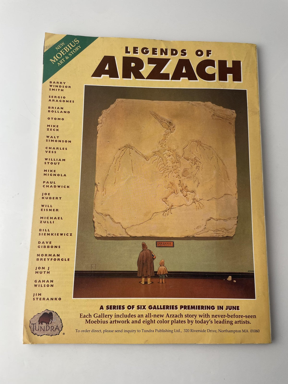 Back cover promotes "Legends of Arzach," with new Moebius art and story, and mentions contributions by Barry Windsor Smith, Sergio Aragones, Brian Bolland, Otomo, Mike Zeck, Walt Simonson, Charles Vess, William Stout, Mike Mignola, Paul Chadwick, Bill Sienkiewicz, Dave Gibbons, Norman Breyfogle, Jon J Muth, Gahan Wilson, Jim Steranko, and others.